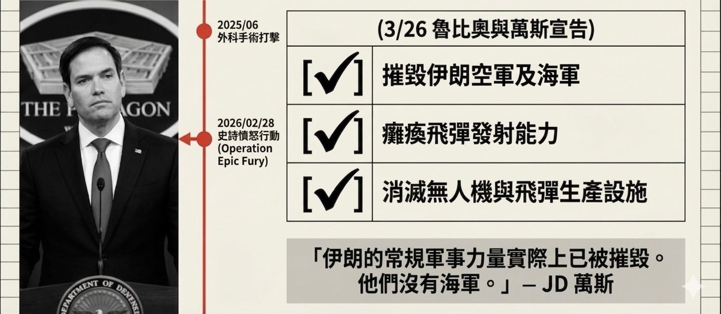 魯比奧 (Rubio) 的公開表態,傳達出一個核心訊號——美方重申目標基本達成,退場的其中一個選項已預設完成,這張牌怎樣打、何時打出由總統最後定奪。