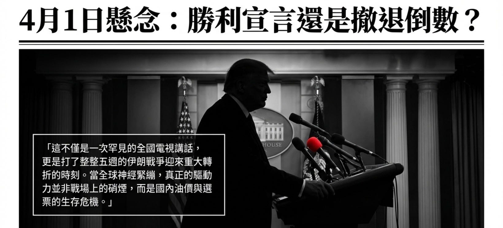 4 月 1 日,美國總統川普的全國講話引發全球市場劇烈波動,原油價格應聲飆升 10%。投資者原本預期會聽到「軍事行動結束」的表態,然而等來的卻是變本加厲的威脅。