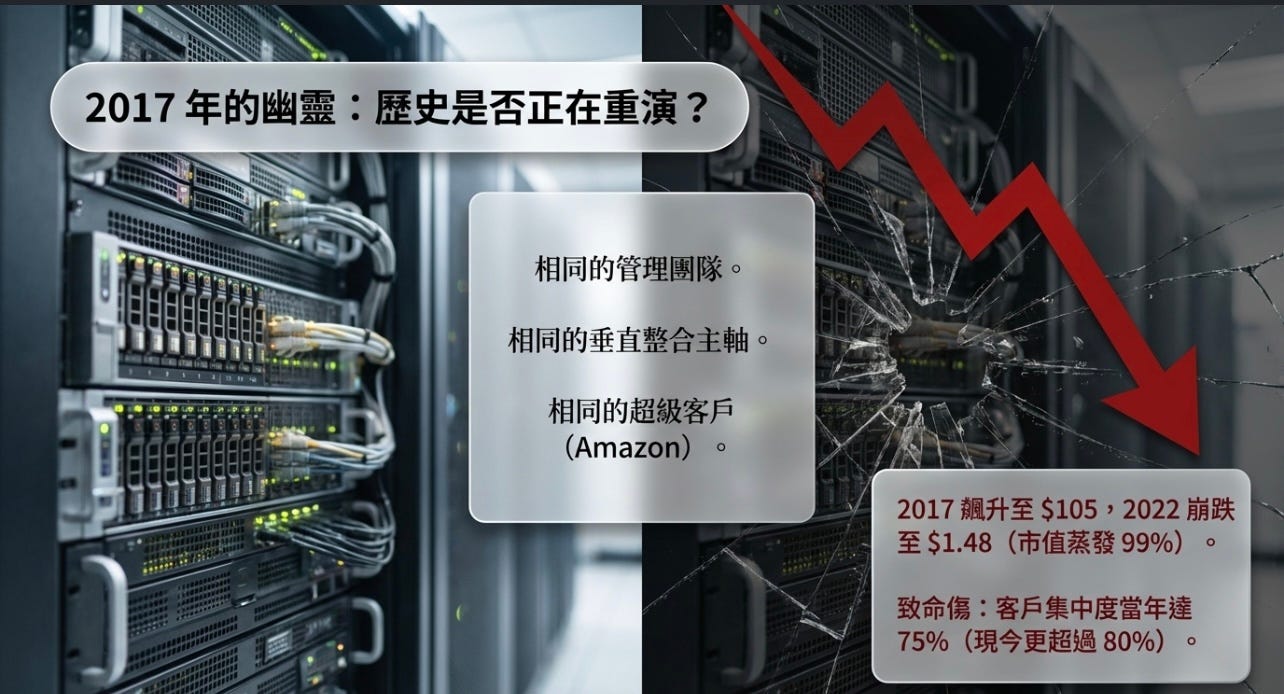• 第二劫(2017-2019): 在 2018 年 9 月 爆發的雷射產品缺陷事件,是該公司發展史上最嚴重的轉折點,也因為過度依賴單一雲端巨頭客戶(Amazon),股價從 90 多美元跌至個位數。林誌祥面臨前所未有的質疑。