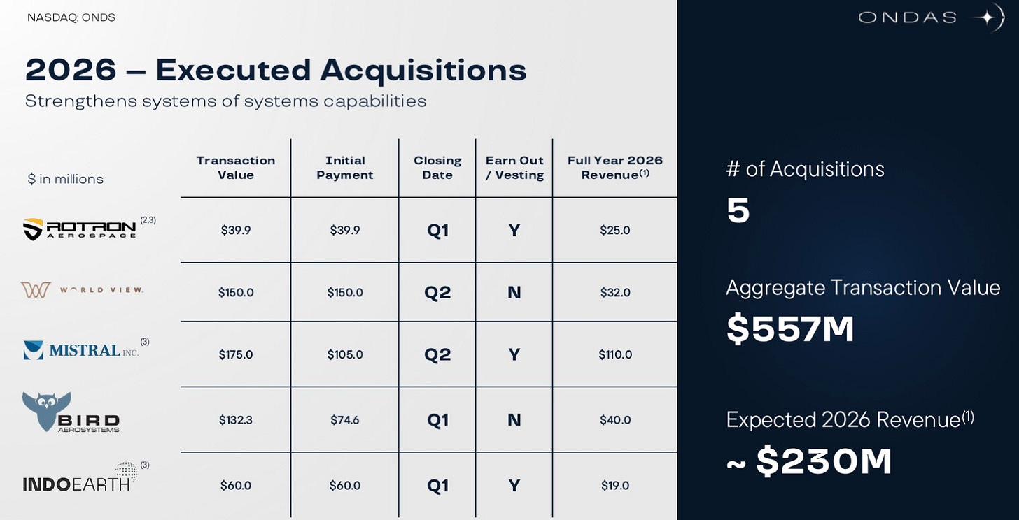 5項收購中,獲高調宣傳的World View,翻查紀錄其實一項早年失敗的SPAC 交易,而且估值一直下跌。直到最近搭上Palantir,而ONDS 收購前出資的$10M 很可能就是探購Palantir 系統費用,World View 可使用的氣象氣球總數只是400 多個,同時執行任務的數量不明。被ONDS 看中原因極可能是因為其客戶主要集中在NASA, DoW 及US Air Force。